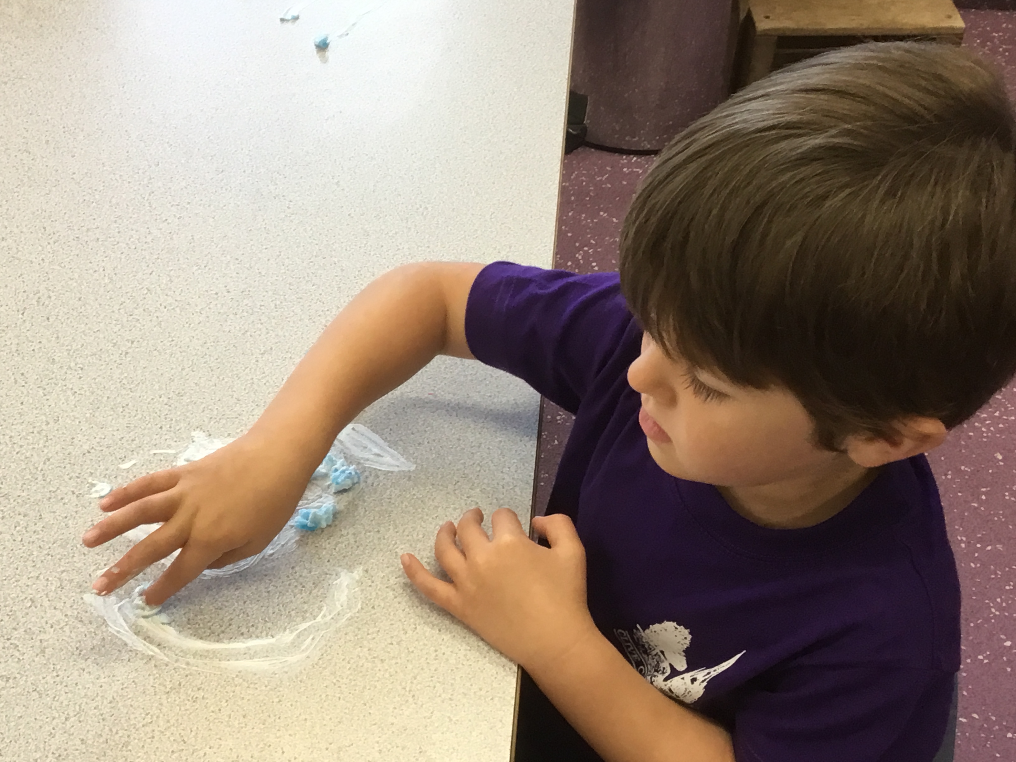 We love mark making in different materials. Today we have been writing in shaving foam.